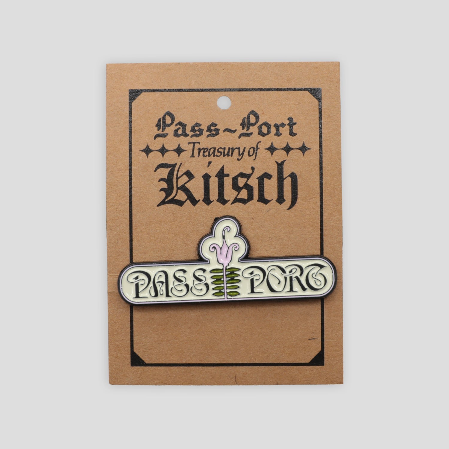 Pass~Port Gardenia Pin from range #44. The Gardenia pin is a metal die struck enamel pin with rubber back stopper.