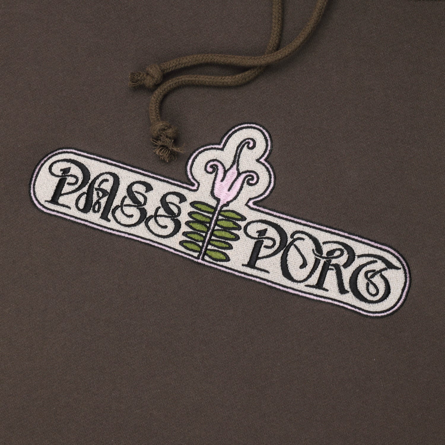 Pass-Port Gardenia hoodie from Range #44. This Pass-Port jumper is crafted from a cotton-polyester blend and features a direct embroidery on the front, finished in the classic Pass-Port hoodie fit.