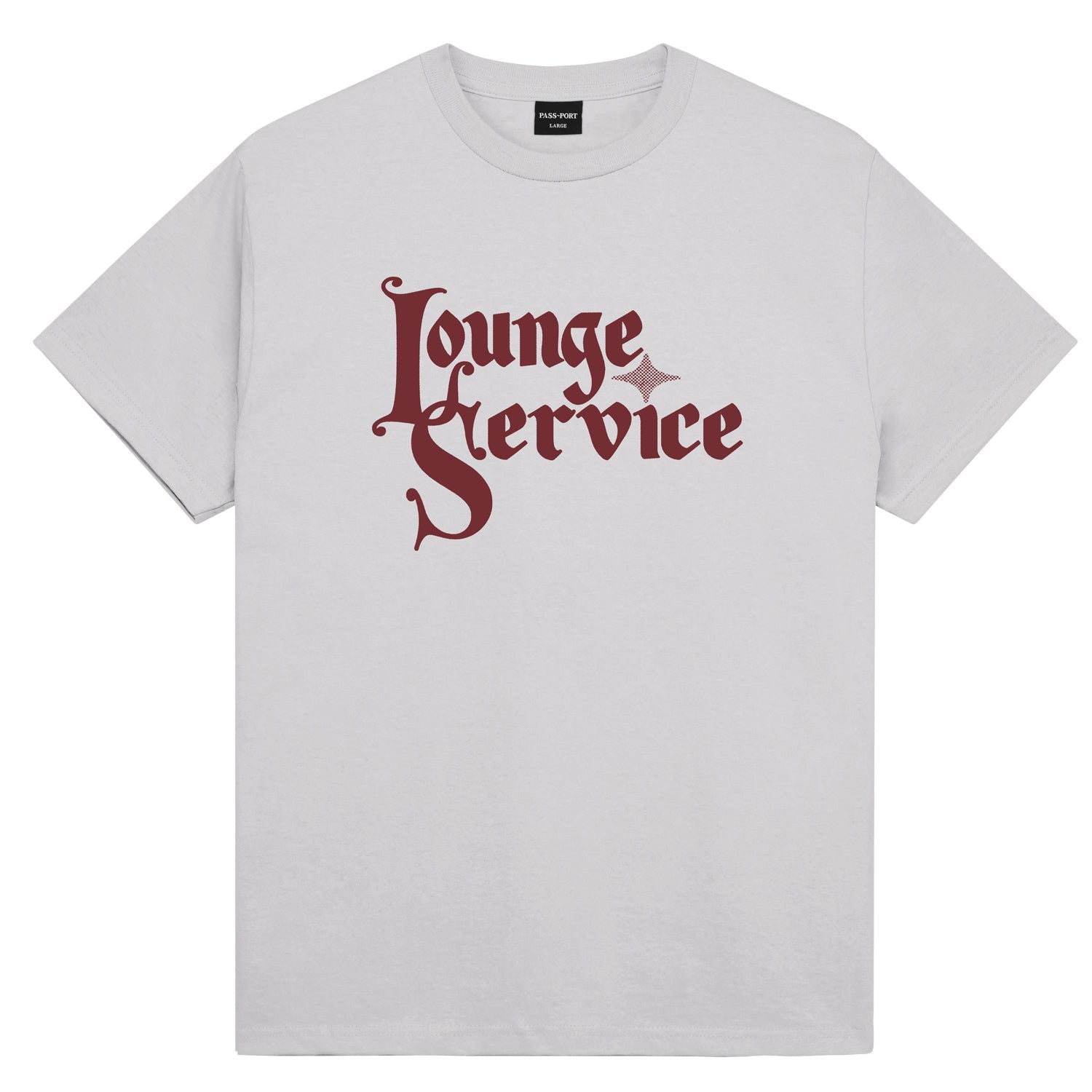 Introducing Range #47: The Pass-Port Lounge Service tee in Oyster Grey is made from 100% cotton jersey and features a screen printed front and back graphic, finishing in the signature Pass-Port fit.
