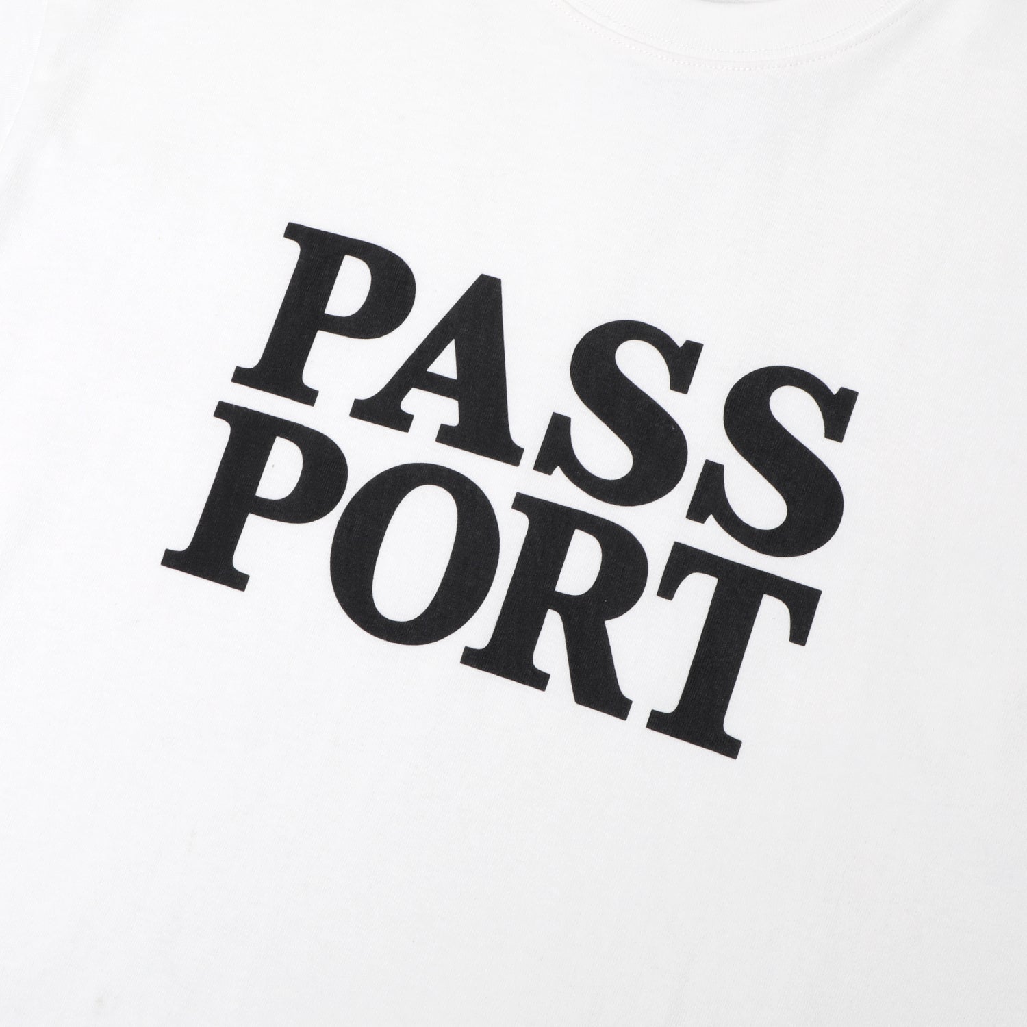 Introducing Range #46: The Pass-Port Official Stacked tee in white is made from 100% cotton and features a screen printed front graphic, finishing in the signature Pass-Port fit.
