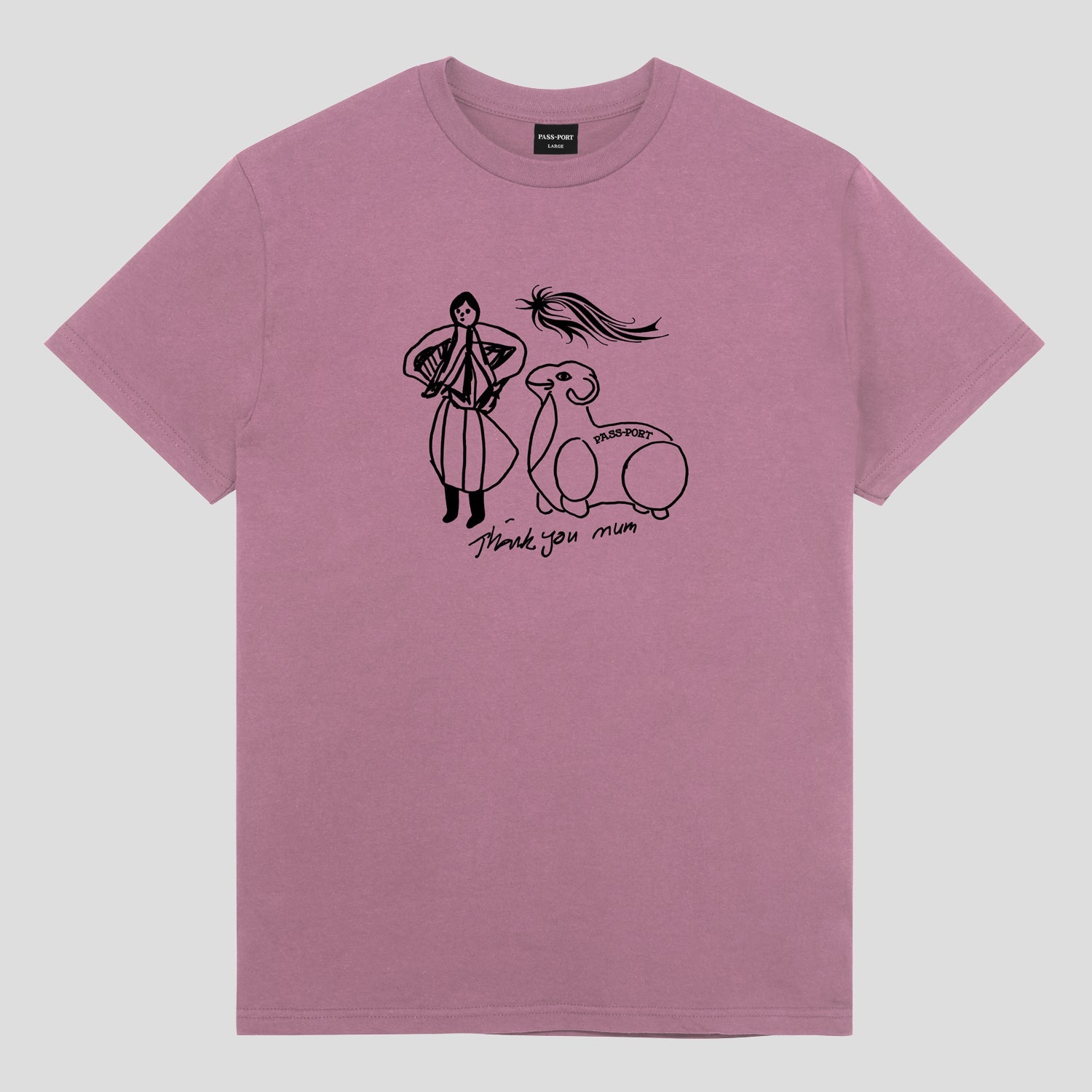 Introducing Range #44: The Pass-Port Thank You Mum tee in washed berry is made from 100% cotton and features a screen printed graphic on front. It offers the signature Pass-Port fit.