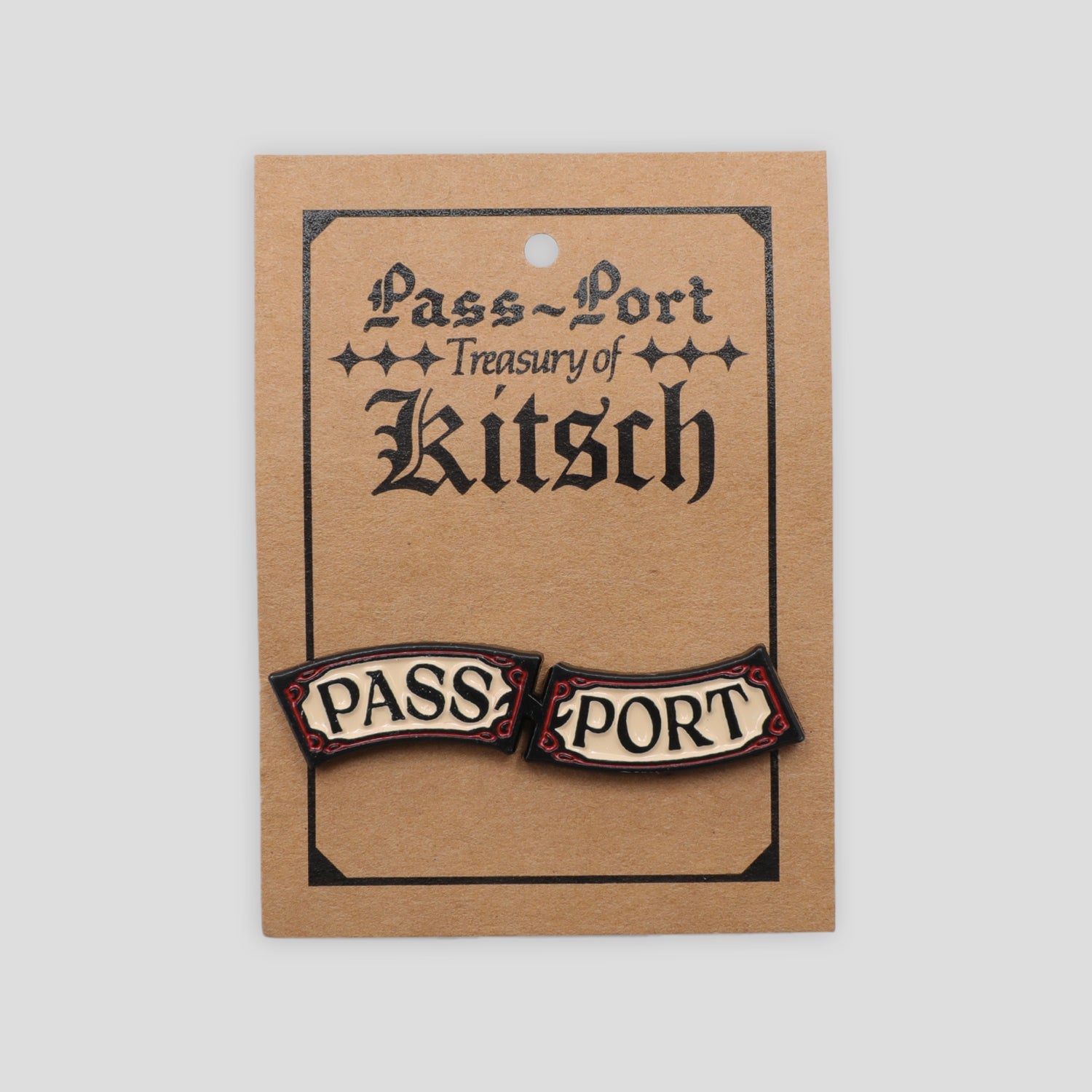 Pass~Port Red Flag Pin from range #44. The Red Flag pin is a metal die struck enamel pin with rubber back stopper.
