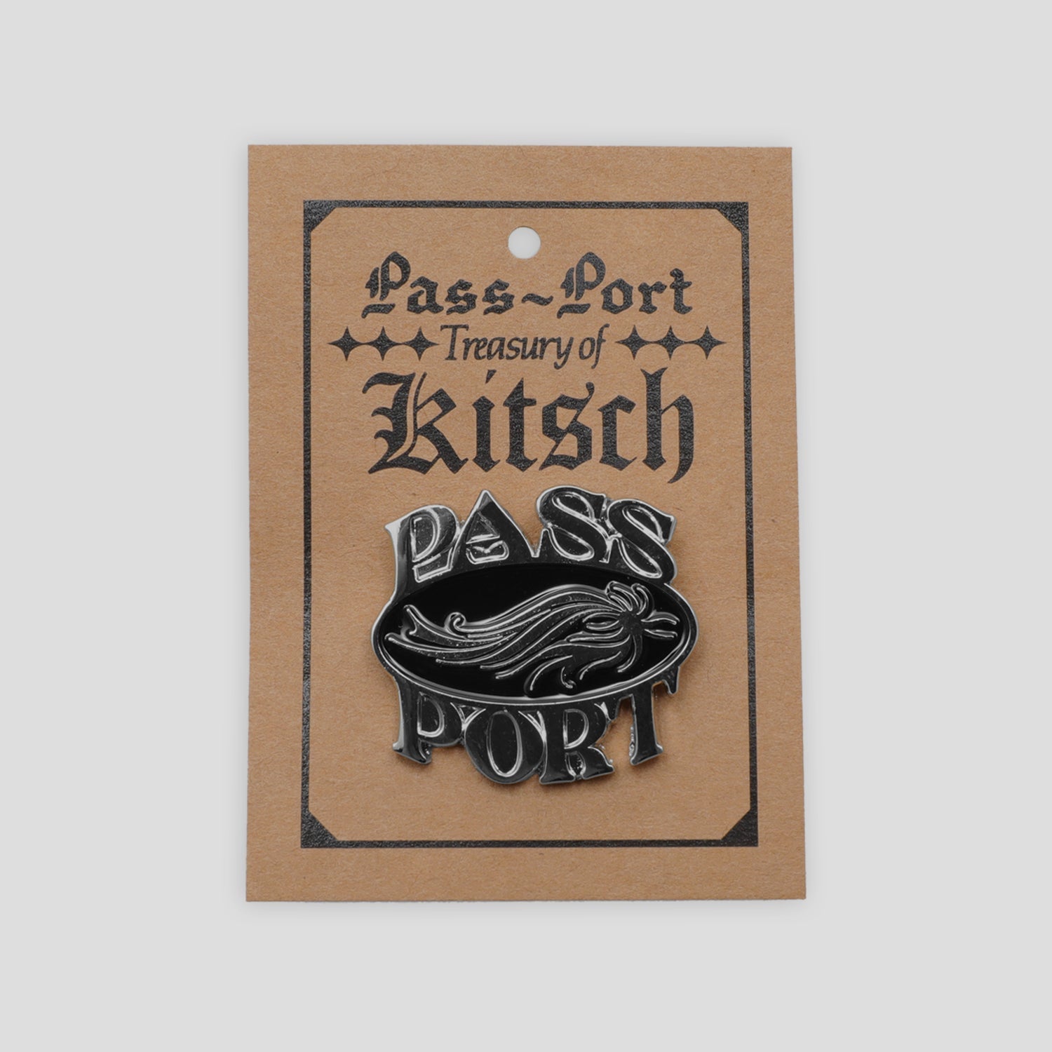 Pass~Port Sunspot Pin from range #44. The Sunspot pin is a metal die struck enamel pin with rubber back stopper.